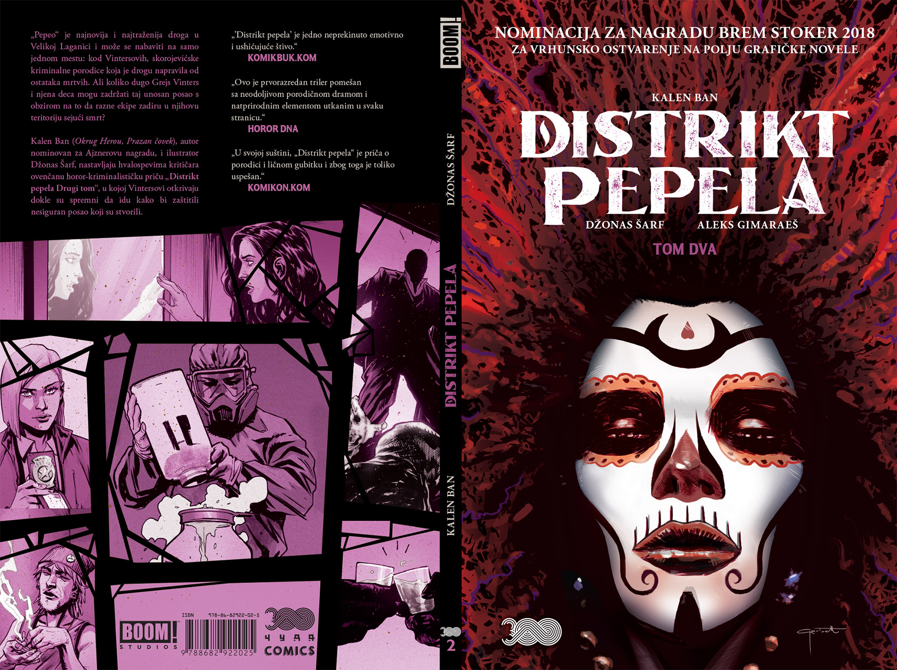 Autor Kalen Ban, nominovan za nagradu Ajzner (Harrow County, Th e Empty Man), udružuje se sa ilustratorom Džonasom Šarfom za Distrikt pepela, izuzetnu mešavinu krimića i horora koja nam bez zadrške prikazuje koliko smo zapravo povezani, ili nepovezani, sa svetom oko nas.